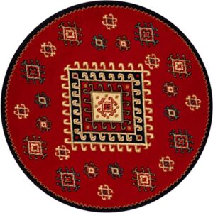 Folk Diamond Rustic Eclectic Bohemian Power-Loomed Indoor Area Rug, 5′ Round, Red by Superior