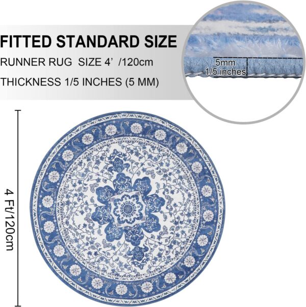 - The surface of this circular rug is made of high quality polyester material, which is very absorbent and dries quickly. The rugs for bedroom is machine washable, but the non-slip material on the back is not heat resistant, so the floor rug cannot be dried in the dryer at high temperatures.