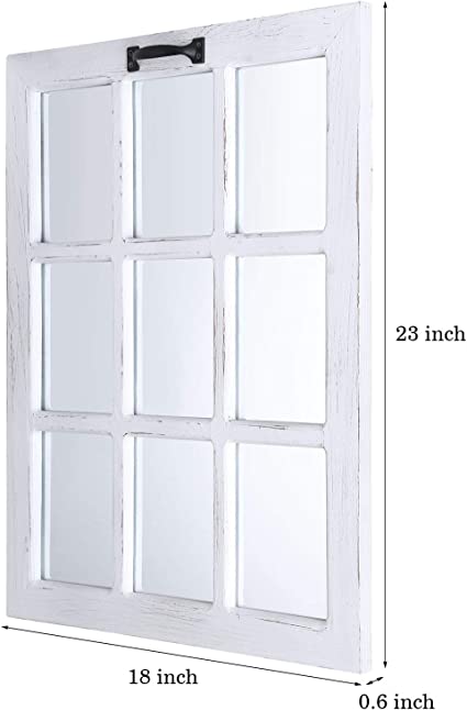 - FEATURES: It features a pane of glass that’s divided into 9 sections by genuinely distressed wood.A decorative handle on the bottom completes its authentic appearance.